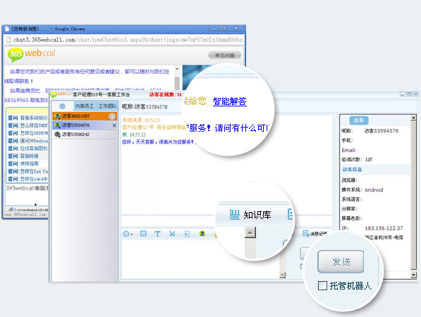 365webcall智能機(jī)器人是一款具有智能化、雙引擎(自然語(yǔ)言與關(guān)鍵字相結(jié)合)、全媒體、